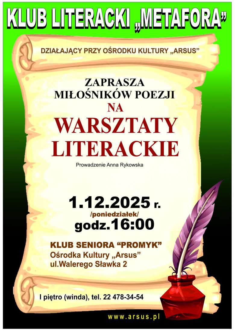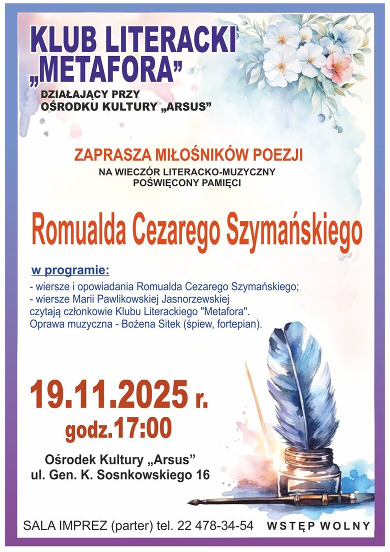 15 października 2025 r. W Ośrodku Kultury "Arsus" w Ursusie odbył się kolejny wieczór literacko-muzyczny.