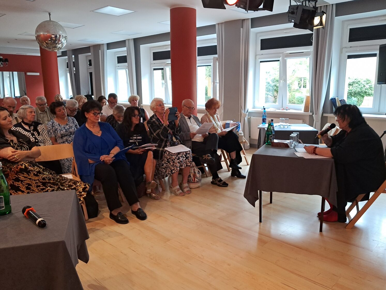 W dniu 15.11.2023 r. w Ośrodku Kultury Arsus w Ursusie mieliśmy przyjemność gościć dwie wspaniałe poetki – pisarki. Swoje wiersze, sympatycznym, ciepłym głosem prezentowała Danuta Kłos (Sochaczewskie Wieczory Literackie „Atut”), natomiast Mira Umiastowska (Klub Literacki Metafora) zaciekawiła (obecnych na spotkaniu) czytając fragmenty swojej najnowszej książki: Plastikowe Miasto, wydanej przez Ludową Spółdzielnię Wydawniczą. Prezentowana twórczość obu Pań została przyjęta bardzo emocjonalnie przez uczestników spotkania, ale nie mogło być inaczej. Romantyczne wiersze Pani Danuty Kłos przenosiły wszystkich do piękniejszego, lepszego świata. Dla równowagi ducha, Plastikowe Miasto urzekło swoim niezwykłym podejściem do realnej strony życia.