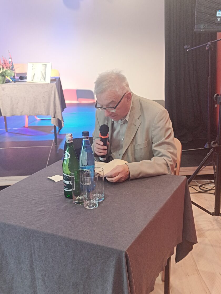 – Mieczysław Kozłowski – współtwórca i wieloletni redaktor kwartalnika literacko-artystycznego Metafora, z wykształcenia polonista i dziennikarz, członek Klubu Literackiego Metafora. Debiutował w 1968 r. Pisze wiersze, prozę poetycką i aforyzmy. Jego twórczość trafiła między innymi do Czech, Rumunii, Włoch. Jest laureatem wielu konkursów literackich. Ostatnio, w maju 2024 r. otrzymał drugą nagrodę w ogólnopolskim konkursie organizowanym w Karczewie. W jego poezji czasami można dopatrzeć się paradoksu, czy łamania zasad związków wyrazowych. Przedstawione na spotkaniu wiersze poświęcone rodzicom, żonie, przyjaciołom, w których stosuje oryginalne metafory zachwycające sugestywnym przekazem, były przejmującym świadectwem miłości i tęsknoty, ale też nieuchronnej akceptacji czasu teraźniejszego. Mieczysław Kozłowski pokazał się też jako wnikliwy obserwator życia codziennego, wychwytujący śmiesznostki i przywary rodzaju ludzkiego (wiersz pokolenia).