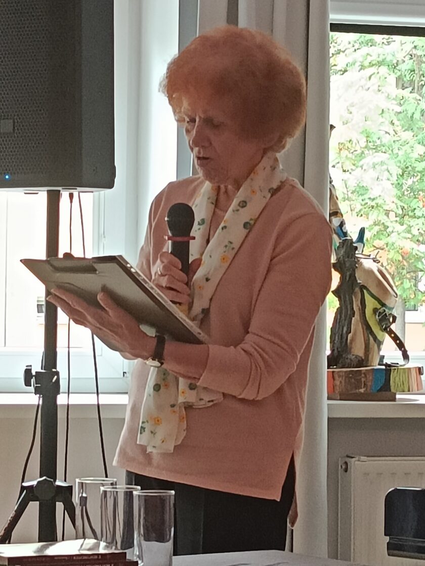 Bożena Anna Śmierzyńska, mimo że dość późno zaczęła pisać wiersze ma ich w swoim dorobku naprawdę dużo. Wydała już cztery tomiki. Ostatni wydany w 2023 r. nosi tytuł: „Nieposłuszna przemijaniu W labiryncie prawd”.Prezentowane podczas spotkania wiersze pełne ekspresji i jednocześnie przemyśleń nad sobą, światem, życiem czy miłością. Poetka pisze także bardzo udane wiersze tautogramowe i brachykolony. Wobec jej poezji nie można pozostać obojętnym. Po prostu trzeba ją polubić i docenić.